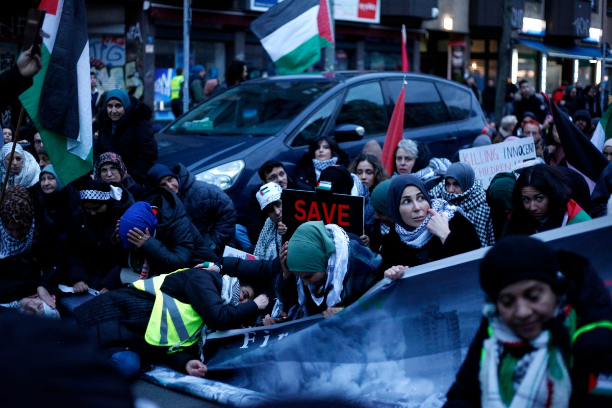 “A 15-year-old youth from Gaza was violently pushed to the ground by police officers,” Palästina Spricht reported. “One officer punching him several times, even though the youth was restrained,” dragging the Palestinian away to a riot van, where he reports being beaten inside by the police. At another protest in Steglitz, the police were so violent towards protesters that an emergency tent had to be set up by the Fire Department to treat the wounded.
